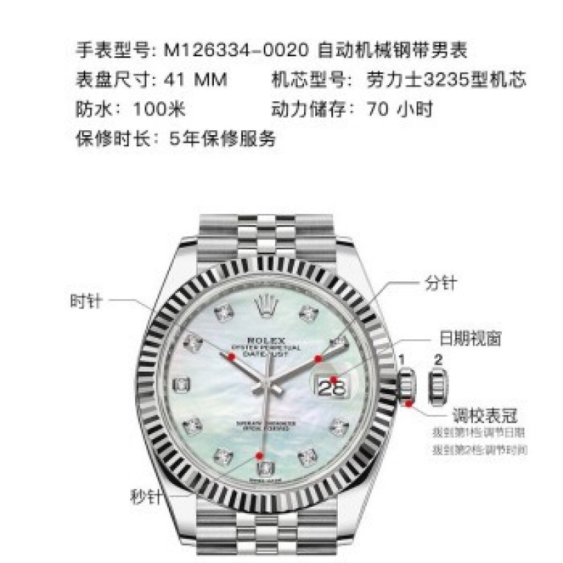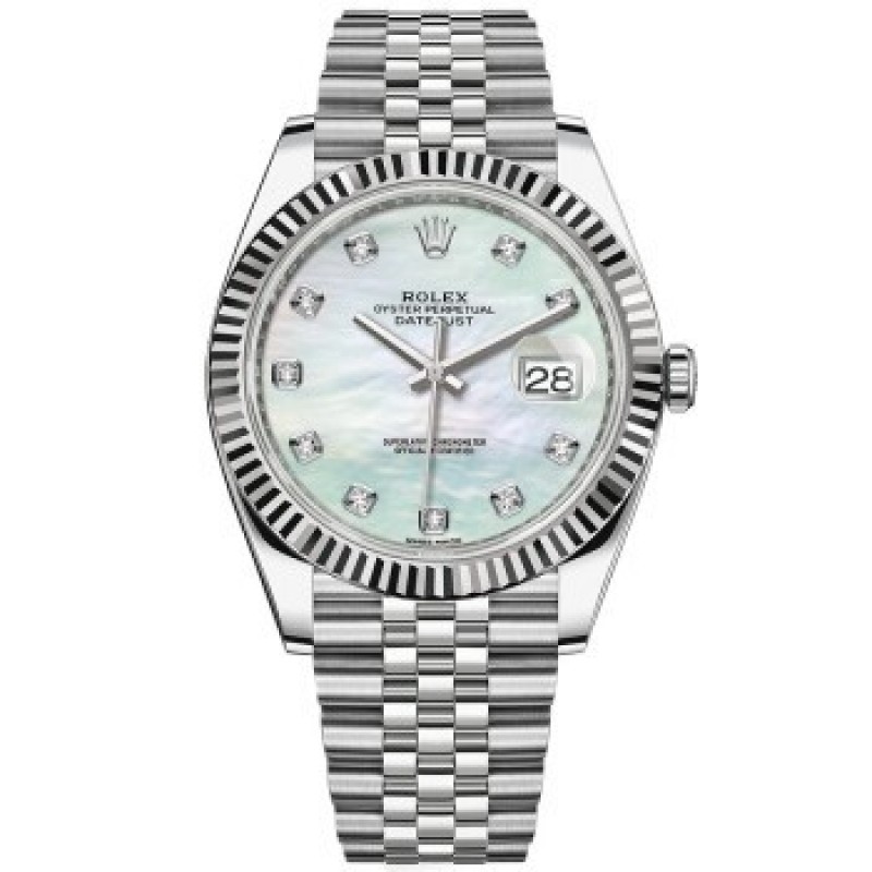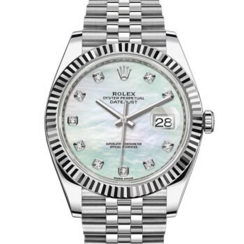 Swiss Rolex Watch Datejust 41 Series Automatic Mechanical Men's Watch M126334-0020 White Pearl with Diamond Five-Grid Chain