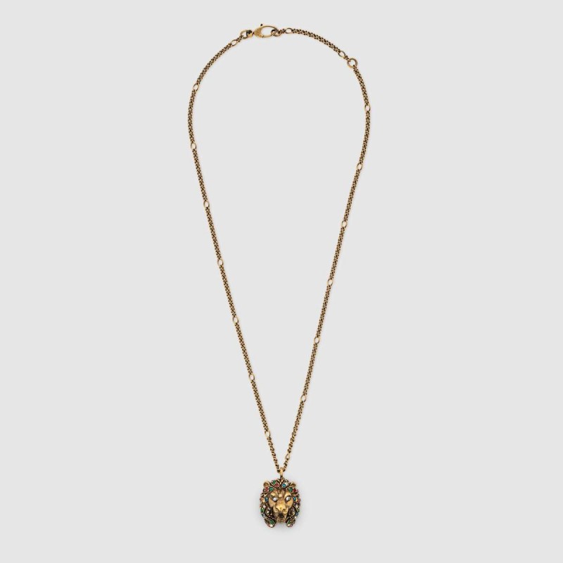 Gucci 19 autumn and winter women's colorful crystal lion head necklace 578920 I4769 8522