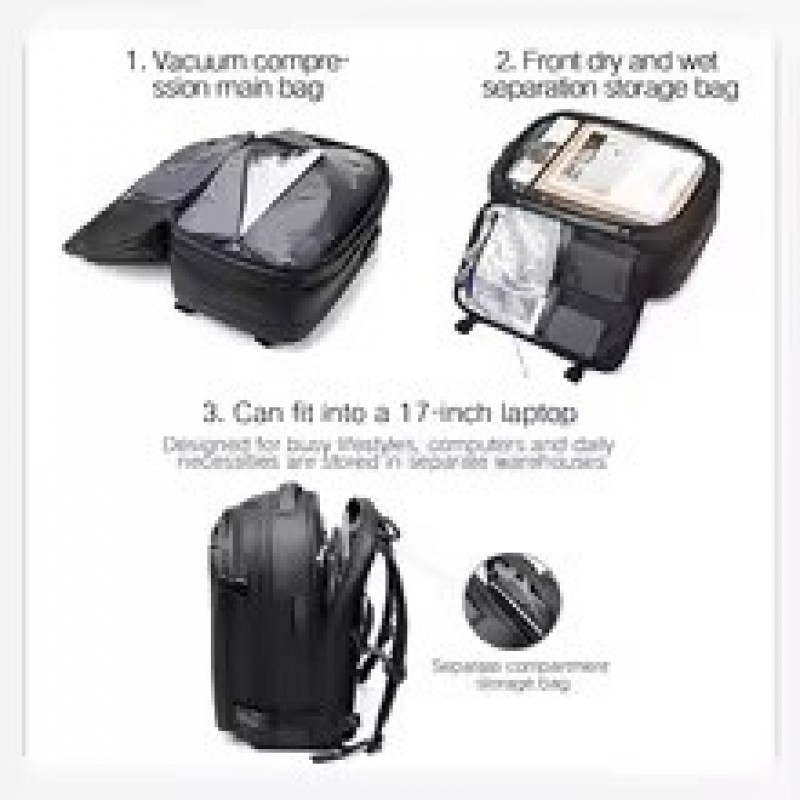 Mochila de viaje para hombre, mochila para ordenador portátil de 17 pulgadas con compresión al vacío, mochila escolar de gran capacidad para negocios, mochila de senderismo expandida